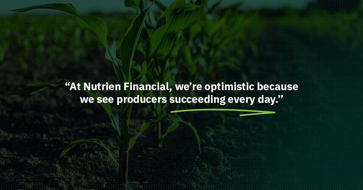 At Nutrien Financial, we’re optimistic because we see producers succeeding every day. We help growers improve agronomic practices, make smarter technology and financial decisions, and strengthen profitability and ROI.